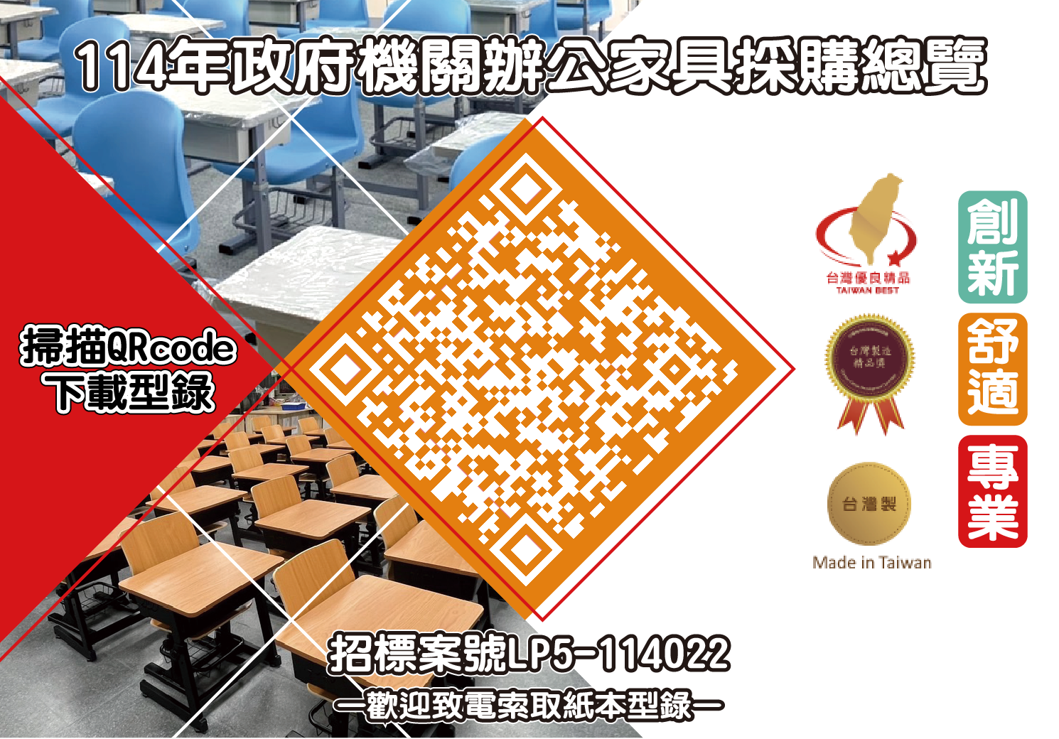 為提供更優質與高效率的服務,我們已出版 114 年度採購商品總攬電子型錄,供各使用單位參考選購。