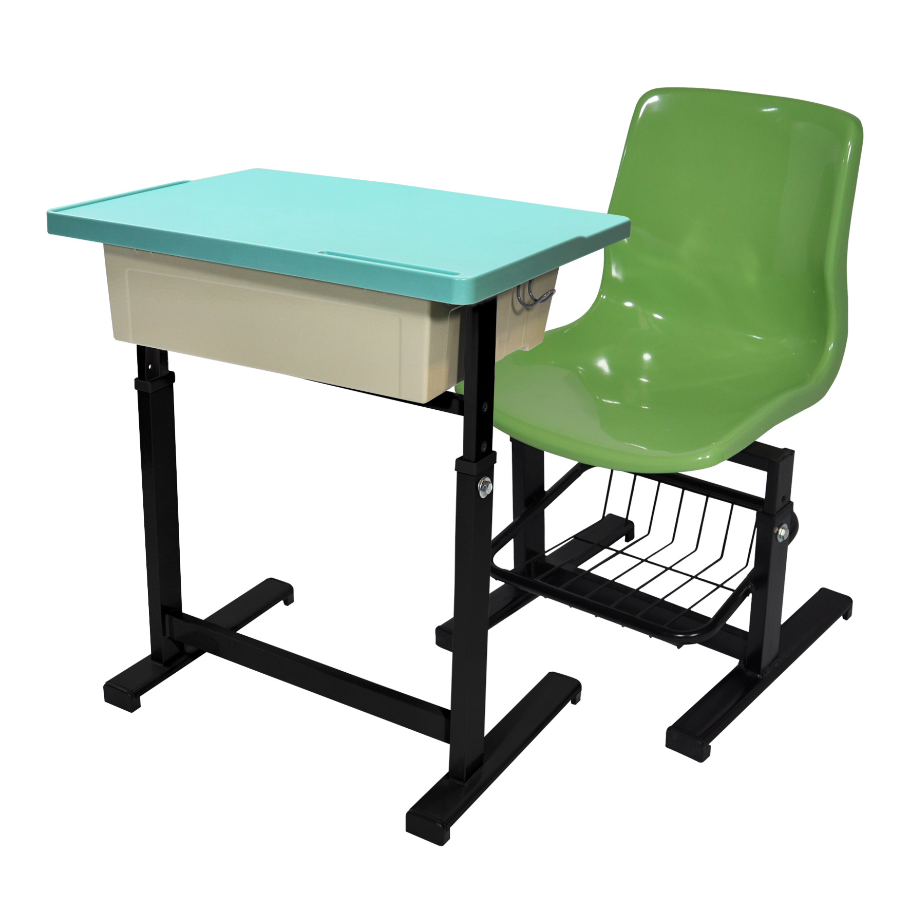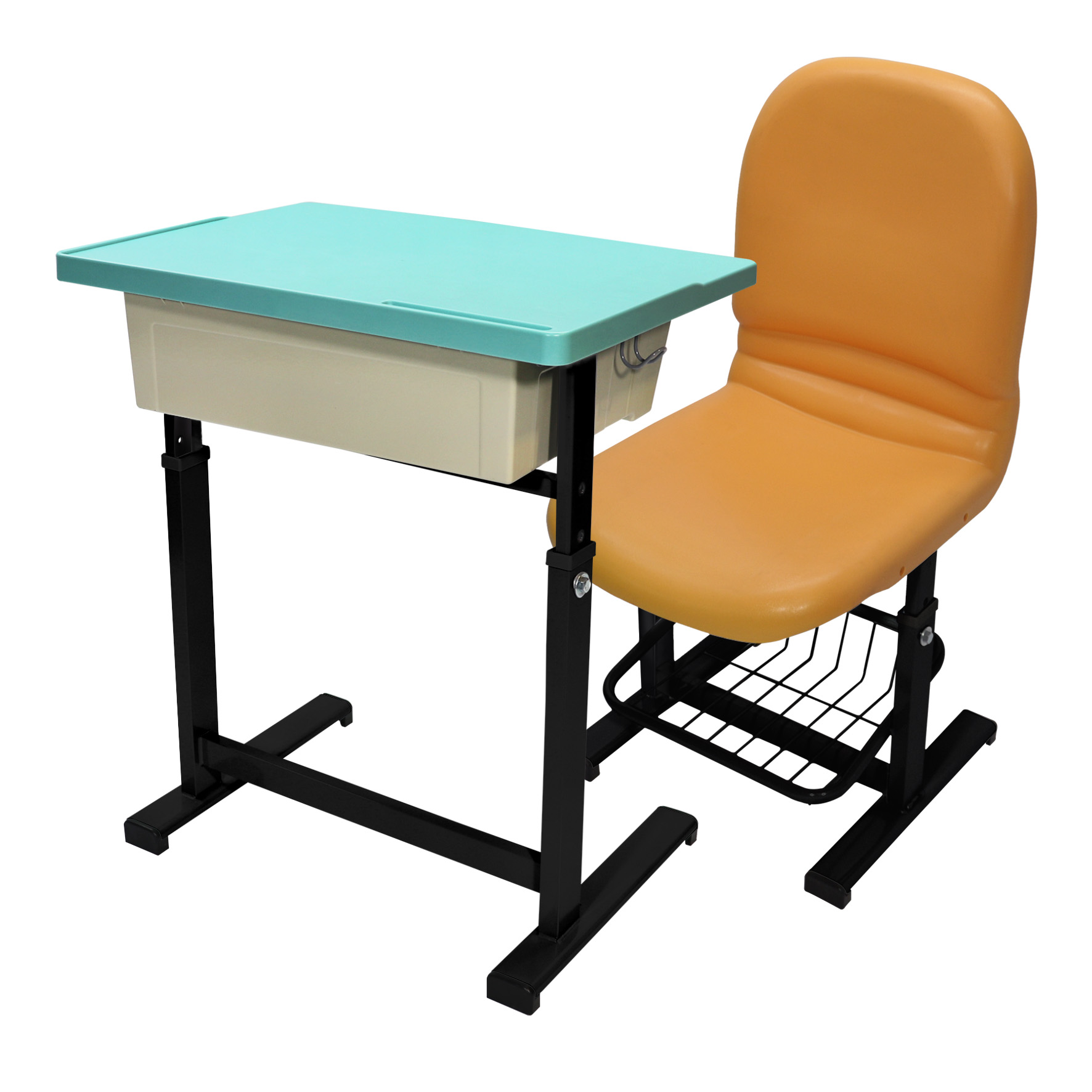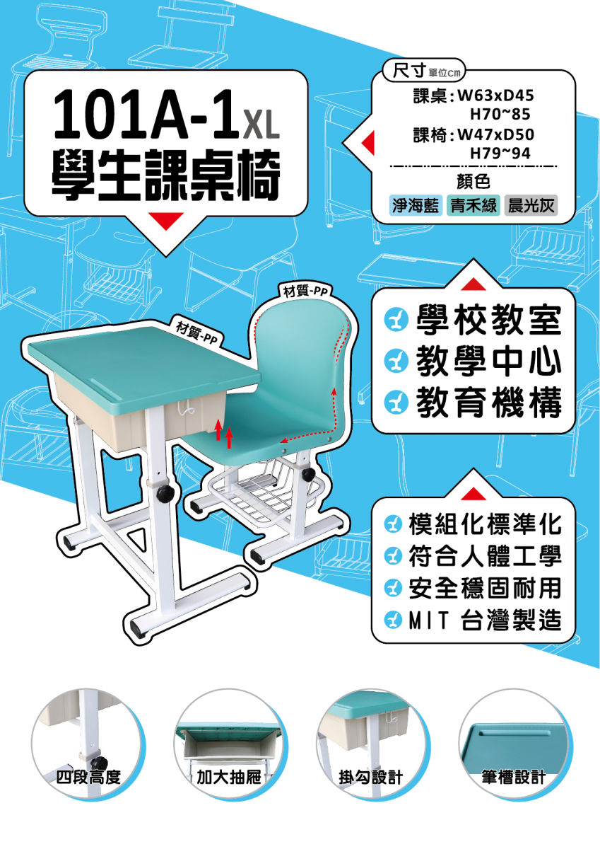 依學生身高調整桌椅高度,符合不同年齡與身形需求。 - ABS塑膠桌板|防水抗污