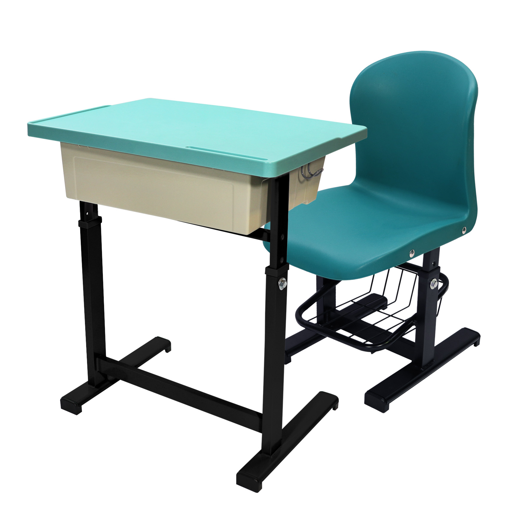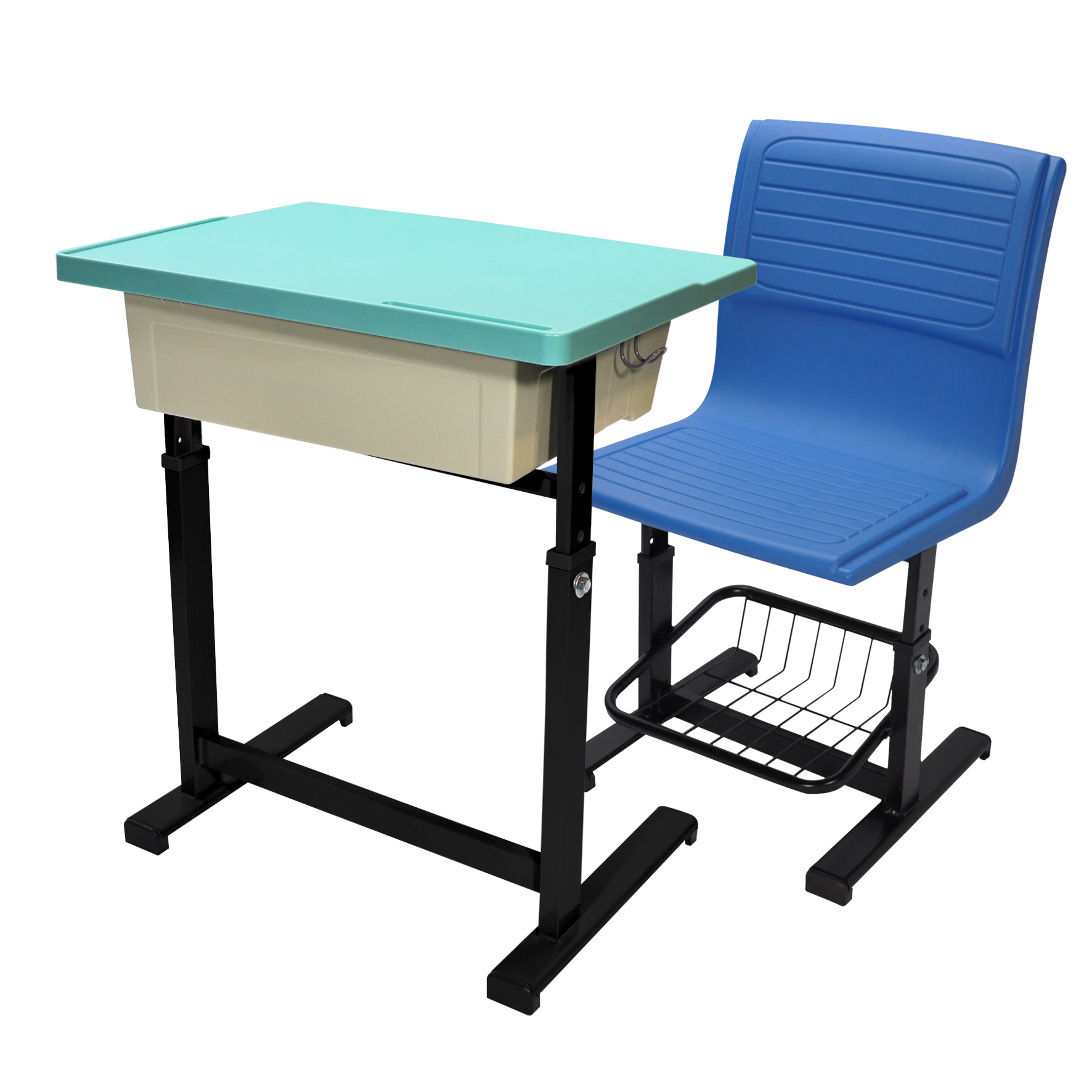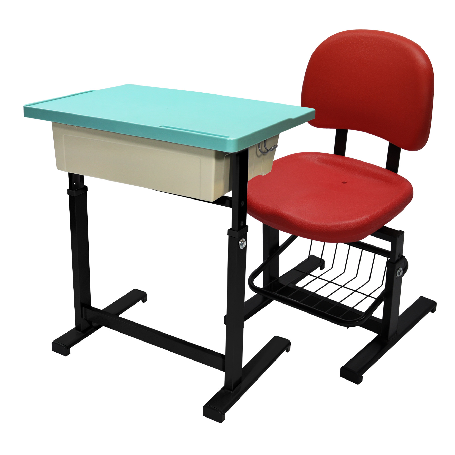 依學生身高調整桌椅高度,符合不同年齡與身形需求。 - ABS塑膠桌板|防水抗污