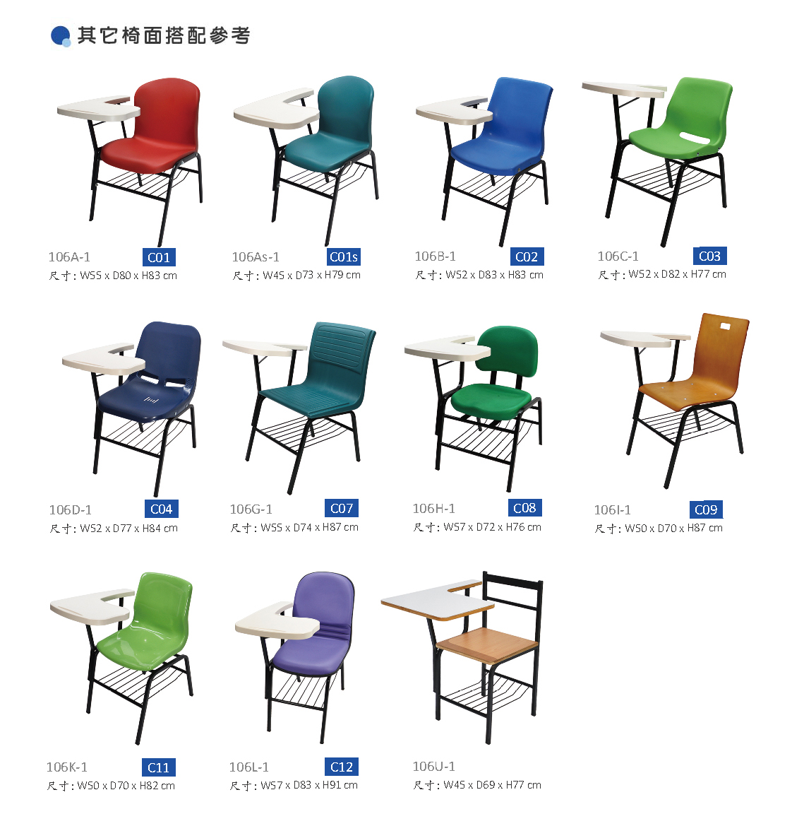 C05椅面-天空藍、橘黃、藻綠、墨綠、深灰、藍