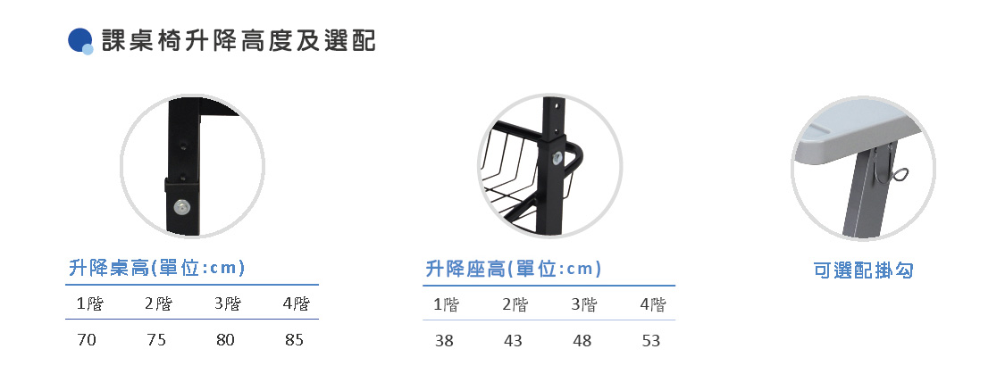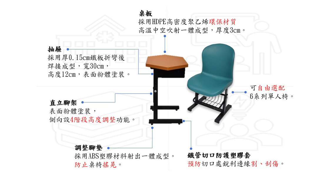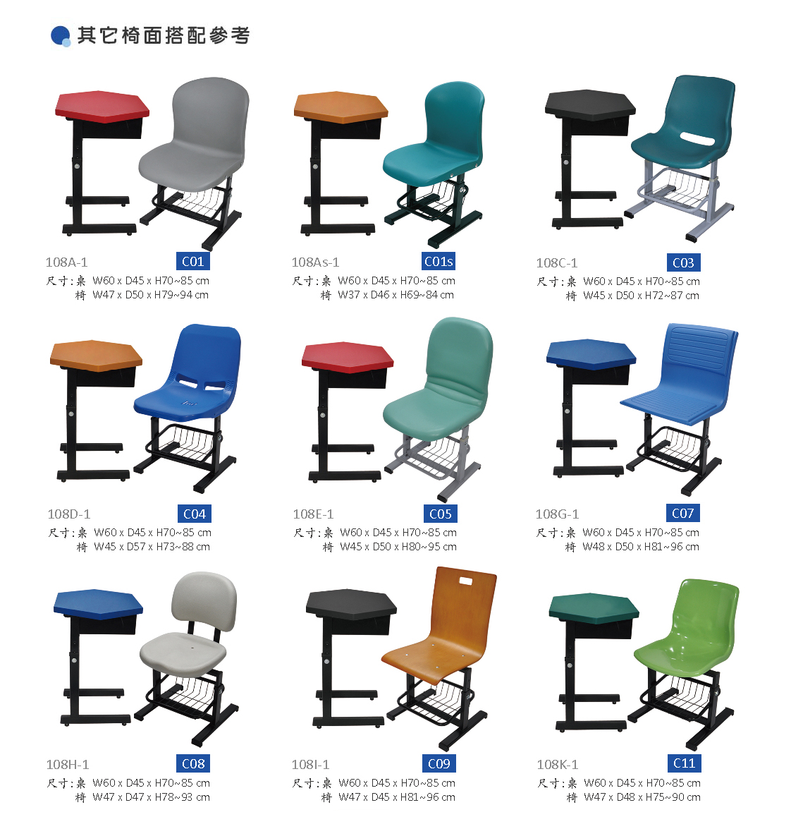 (升降式腳架 : 108-1課桌 + 601B-1課椅)