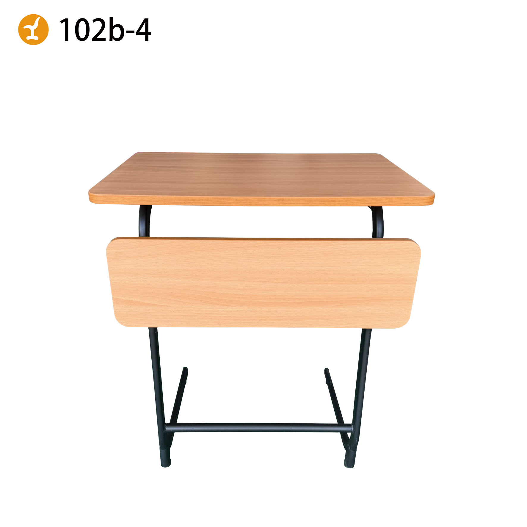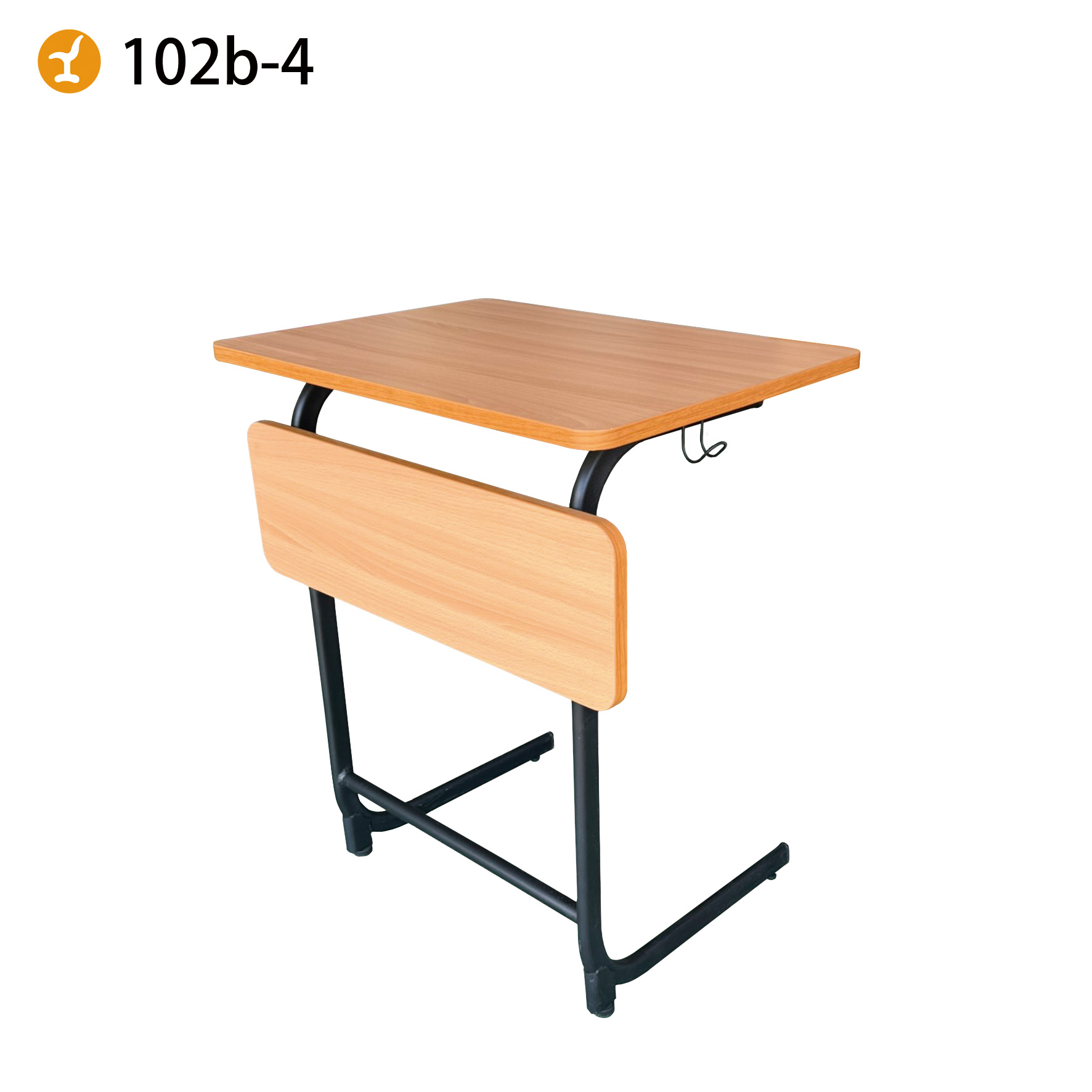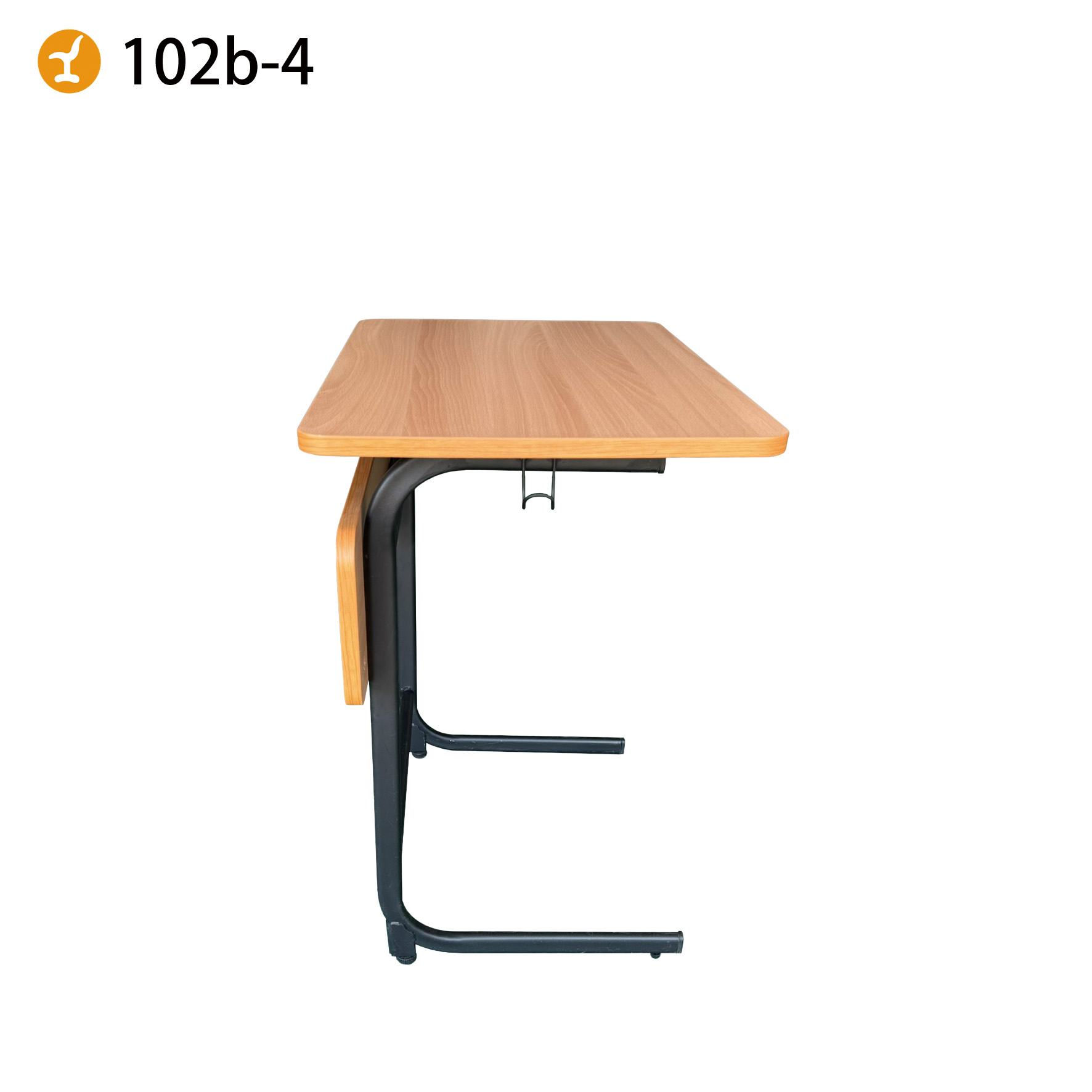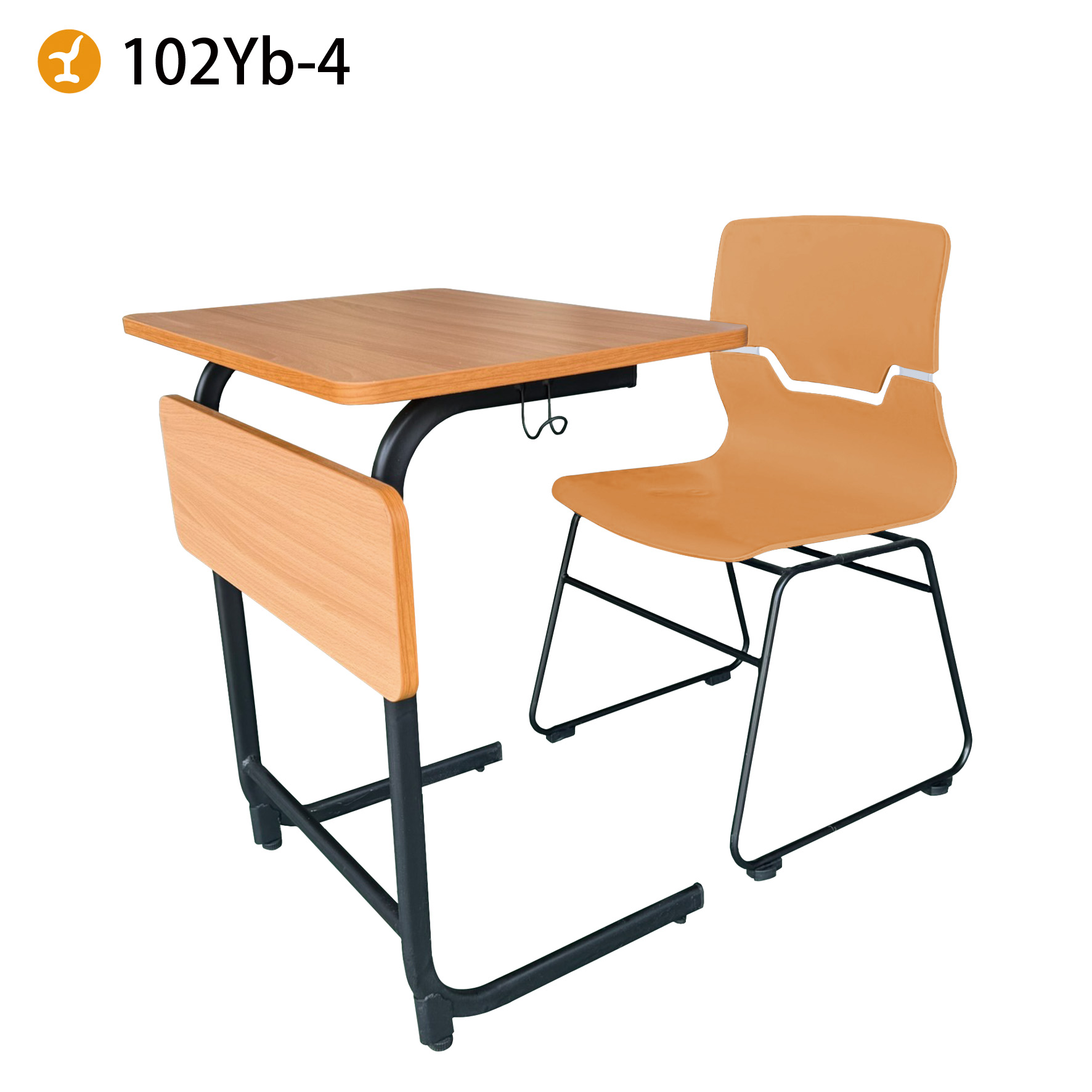 102Yb-4 學生課桌椅以簡約實用的設計為基礎,採用耐刮抗污木芯板桌面與人體工學PP椅面,搭配堅固金屬骨架,提供學生穩定、舒適的學習環境。標配雙掛勾與筆槽設計,提升課桌收納與功能性,適合教室、補習班與教育訓練中心使用。