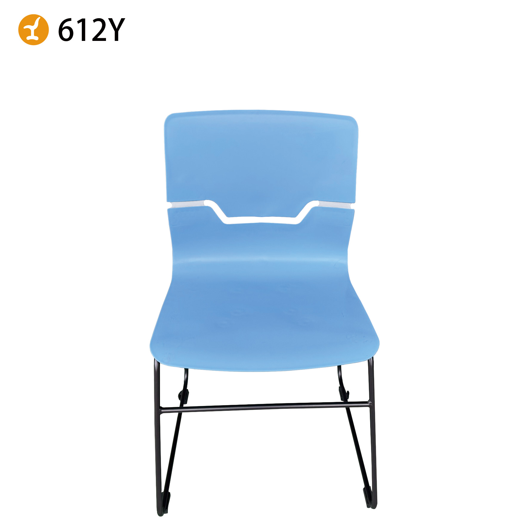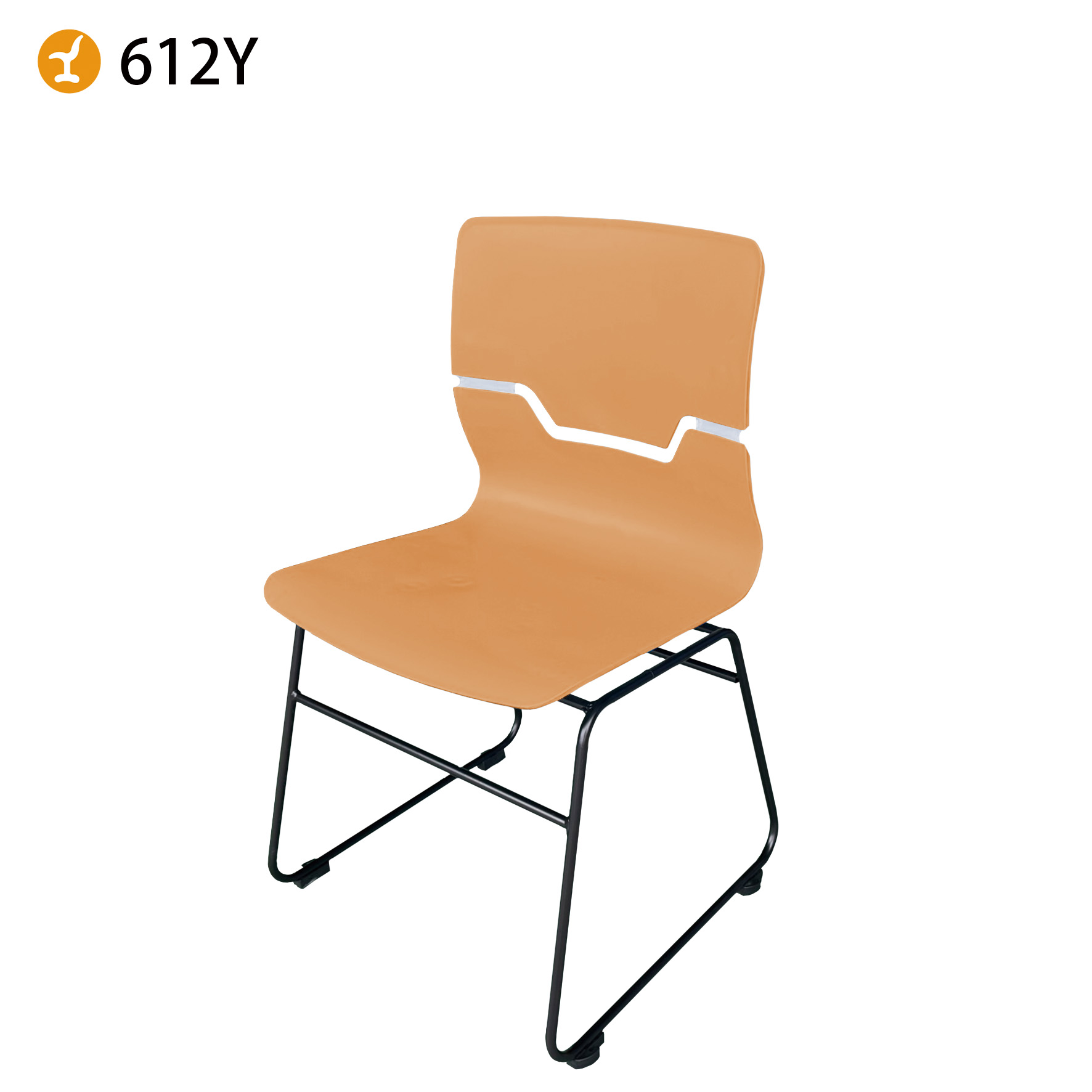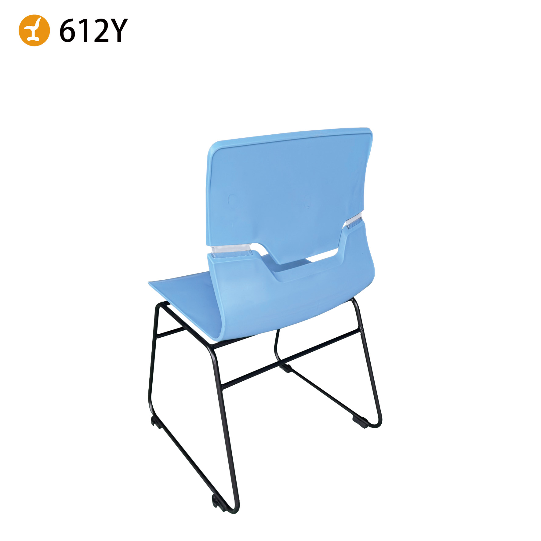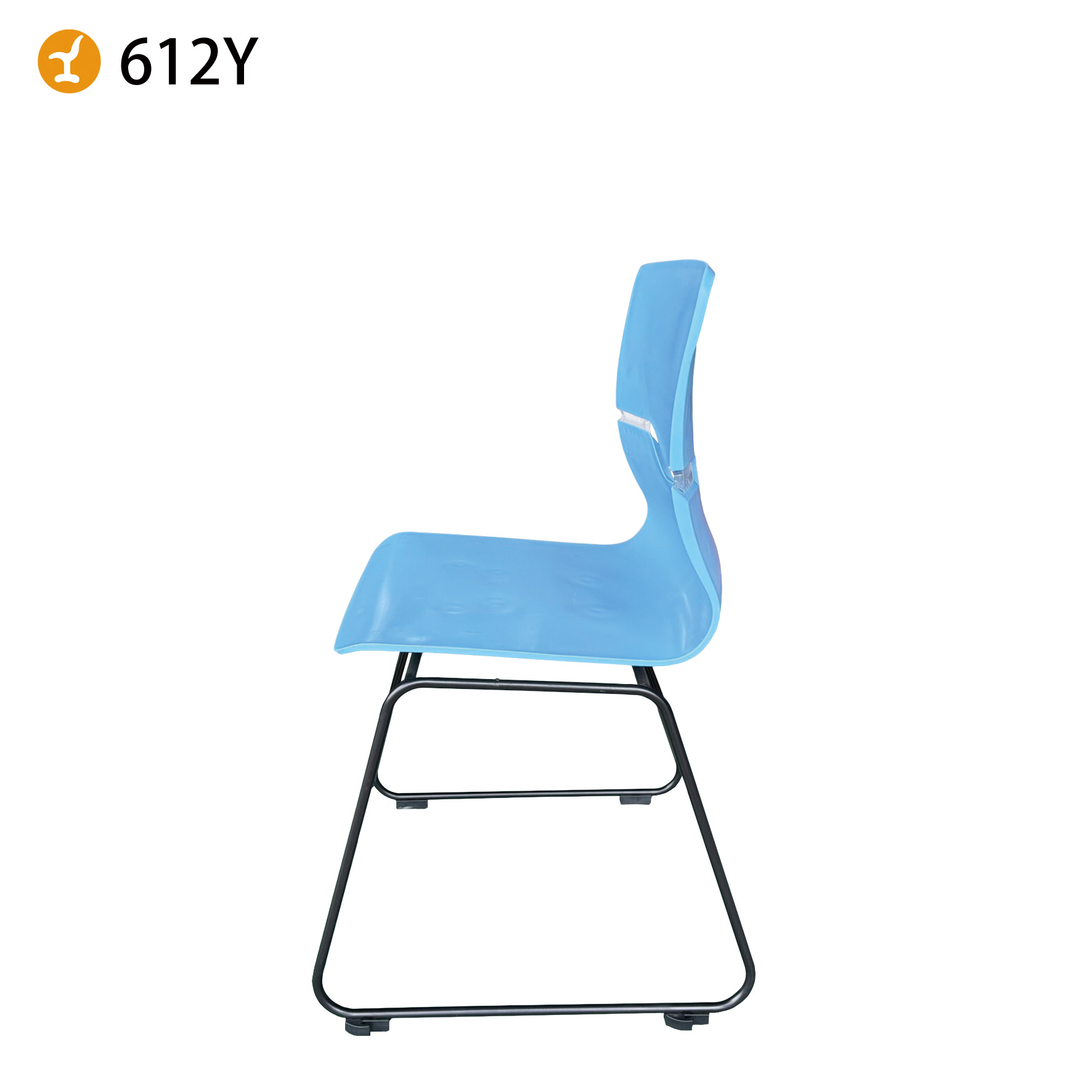 612Y 洽談椅採用一體成型PP塑膠椅面,搭配堅固金屬骨架,具備輕量、耐用、穩固三大特性,適合用於教學空間、辦公洽談、會議室、培訓教室及多功能空間使用。椅身設計符合人體工學,提供良好支撐與乘坐舒適感,亦可與課桌組合使用。